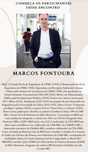 OLIVEIRA, M.F. (2024j6): OLIVEIRA, Marcos Fontoura de. Acessibilidade física e urbana (painel 1). In: SIMPÓSIO (2024b): SIMPÓSIO MULTIPLICADORES DA INCLUSÃO SOCIAL, 1. 2024. Organização: Comissão de Defesa dos Direitos das Pessoas com Deficiência da Seccional Minas Gerais da OAB/MG (CDDPCD-OAB/MG) – evento presencial. Belo Horizonte, 3 dez. 2024. 40 slides (apresentação). Disponível em: link externo. Acesso em: 3 dez. 2024.