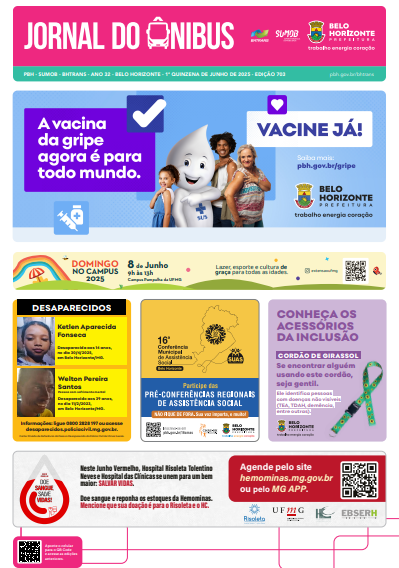 BHTRANS & SUMOB (2025m61): EMPRESA DE TRANSPORTES E TRÂNSITO DE BELO HORIZONTE S.A – BHTRANS; SUPERINTENDÊNCIA DE MOBILIDADE DO MUNICÍPIO DE BELO HORIZONTE – SUMOB. Jornal do Ônibus, Belo Horizonte, edição n.º 703, 1ª quinzena de junho de 2025. 1p. Disponível em: link externo. Acesso em: 21 jan. 2025.